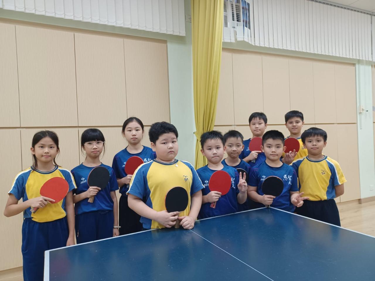 為發展學生的潛能,本校聘請專業教練,改善學生乒乓球的基本技巧及比賽戰術。學校每年均參加學界九龍北區小學乒乓球比賽及其他友誼賽。鼓勵學生持續做運動,養成課餘參加正當休閒活動的習慣。