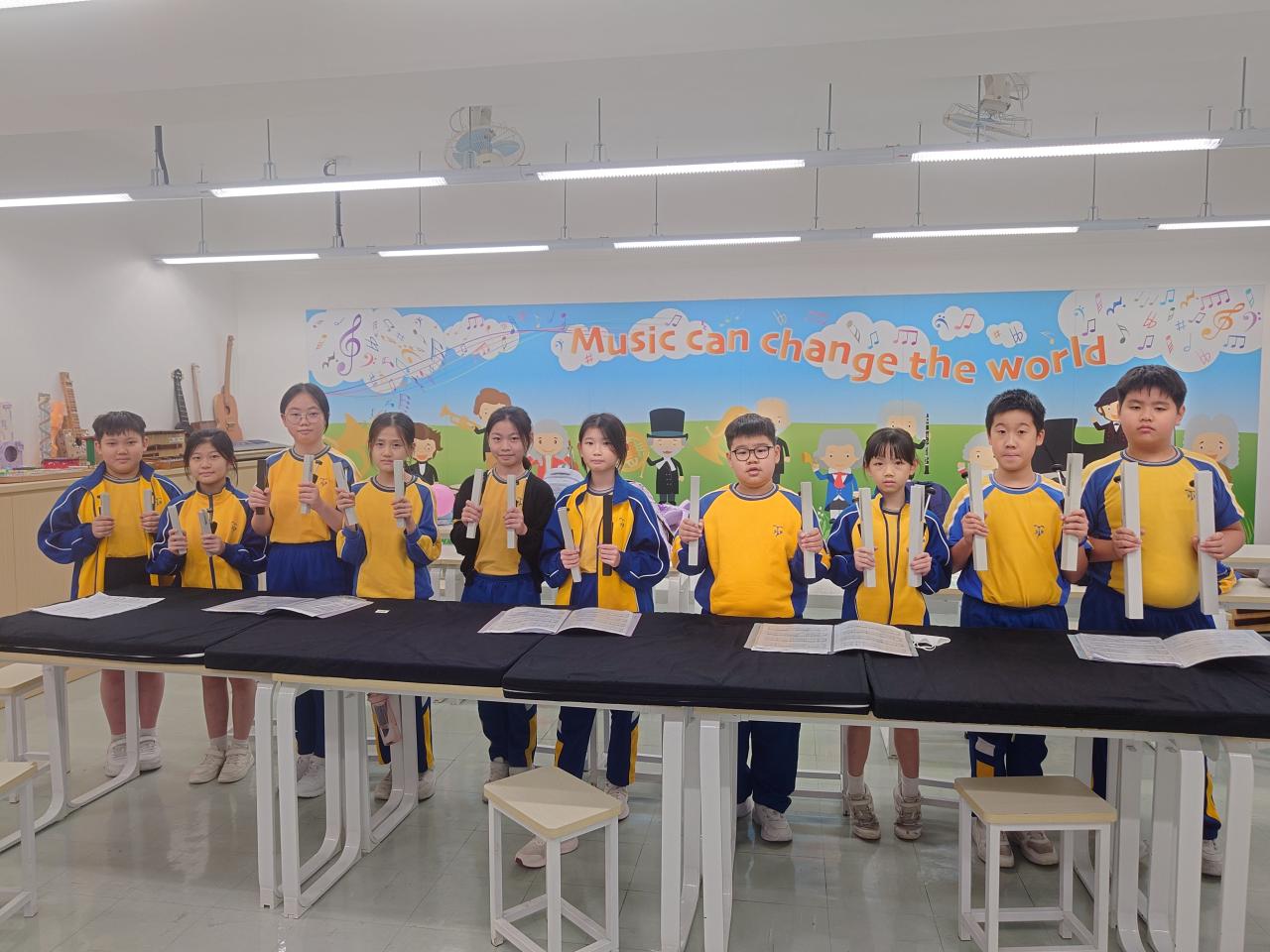 一套手鐘就彷如鋼琴的琴鍵一樣,每位隊員需負責二至四個音,然後全部隊員彷彿變成一對手去演奏樂曲,真不簡單啊!所以隊員間的合作、默契是非常重要的。參加手鐘隊能夠擴闊同學的音樂視野,從群體合作中鍛鍊出忍耐和自律,建立團隊精神。