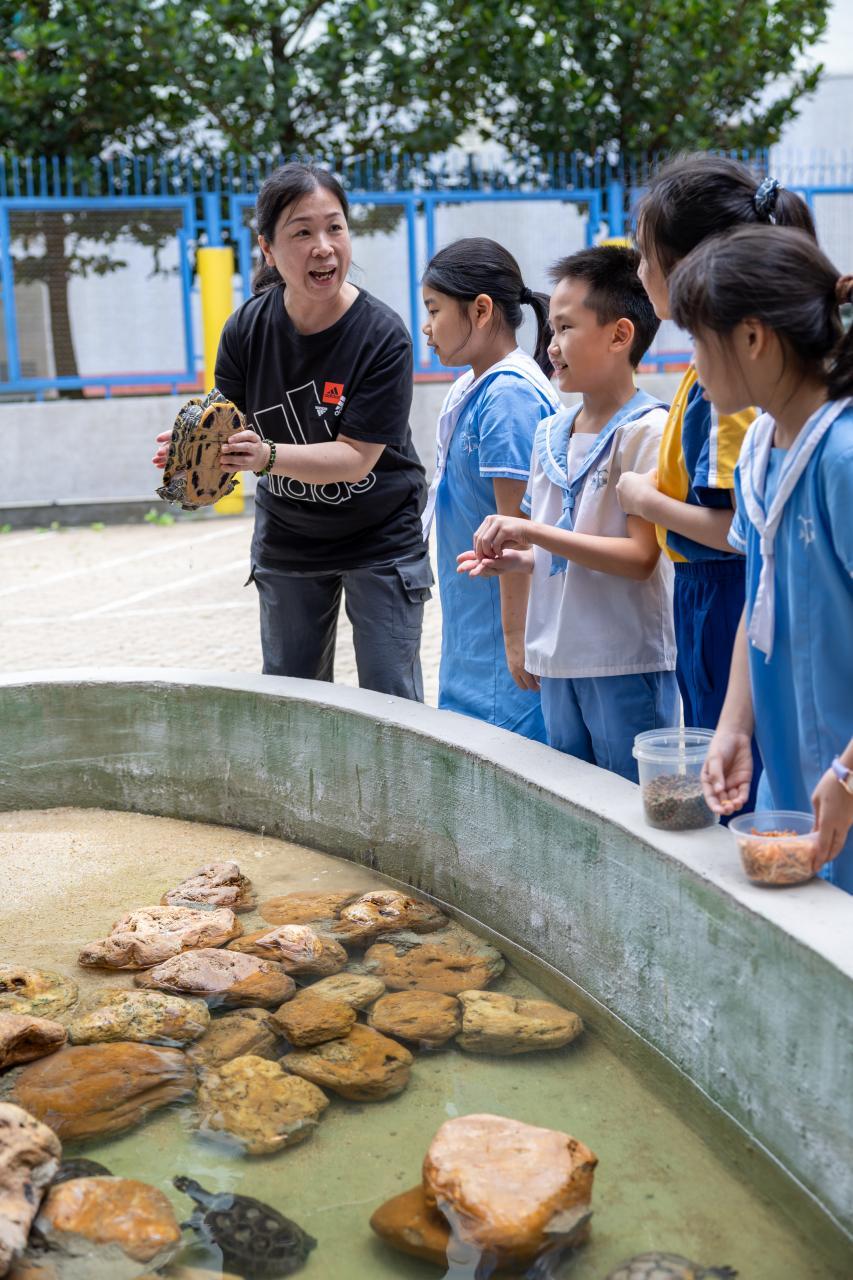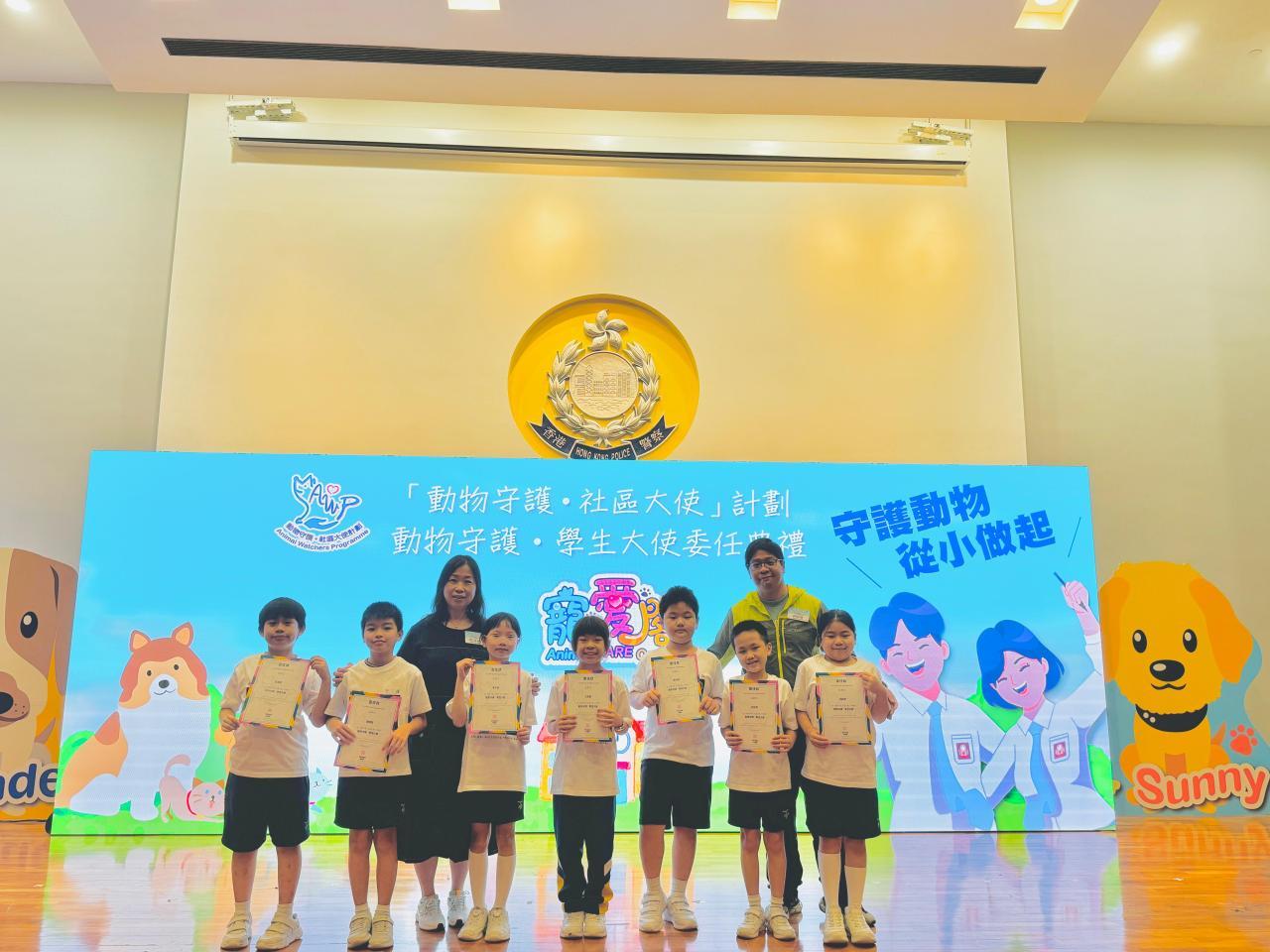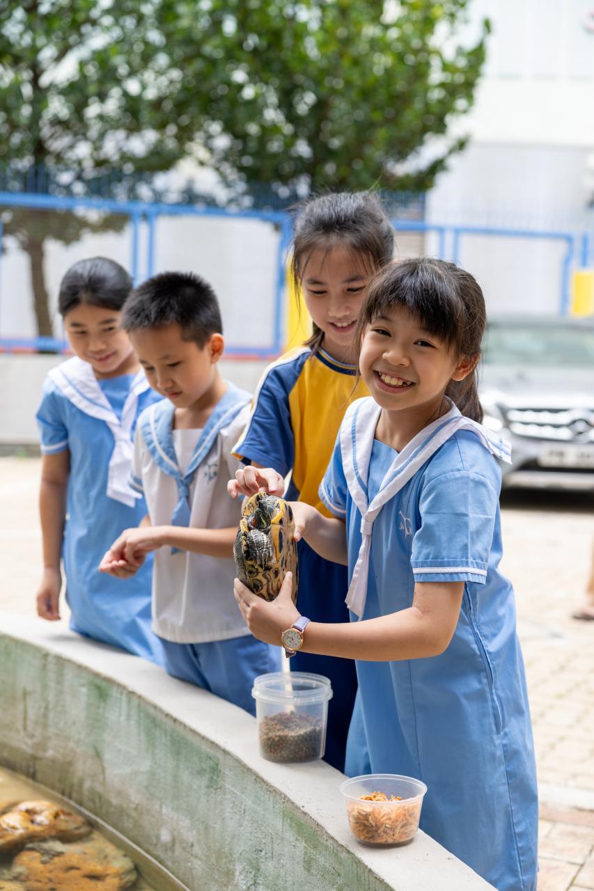 我校參加了香港警察籌劃,賽馬會資助的「動物守護 • 社區大使」計劃(AWP),並於7月13日出席了學生大使委任典禮。十位學生大使成為了寵愛閣的守護人,照顧我們的新成員,八隻小烏龜。他們負責日常餵飼工作,並於小息、午息時在寵愛閣當值,向其他同學宣揚愛護動物的訊息,實踐尊重生命的理念。