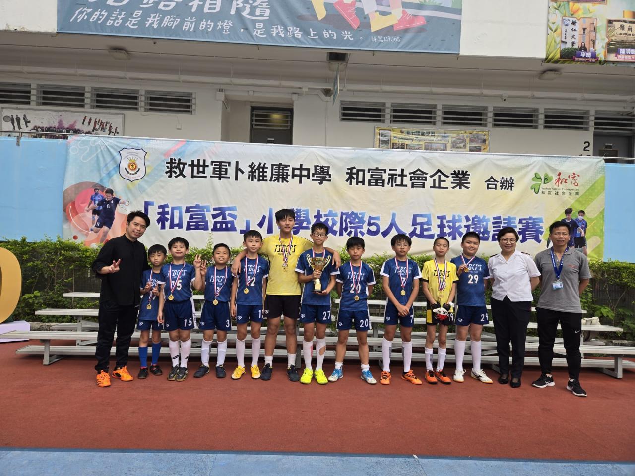 男子足校隊於4月20日參加了2024「和富盃」小學校際 5 人足球邀請賽,在比賽中本校隊員都獲得金碗組冠軍!