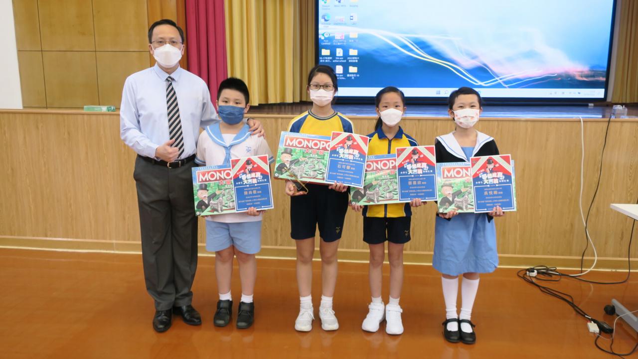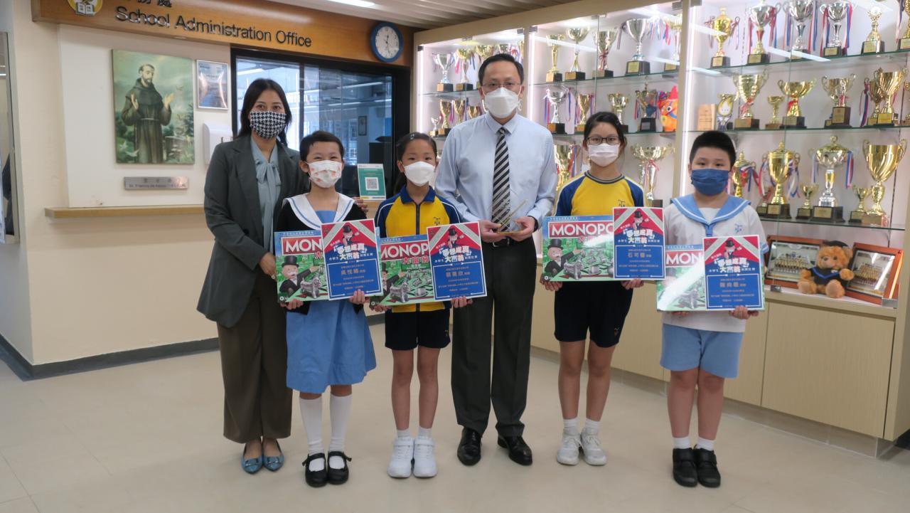 Ø 於10月8 日,本校4位學生出席第二回合之小學生大富翁校際比賽。是次比賽,本校獲冠軍殊榮,並獲得獎盃乙座、大富翁夢想世界入場門票60張及書券1000元